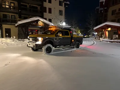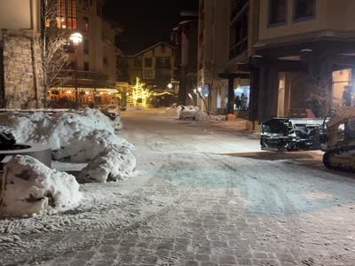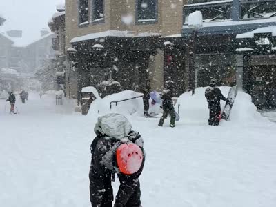 Early construction phase not evident; active snowstorm with heavy snowfall obscures the view and suggests challenging weather conditions.