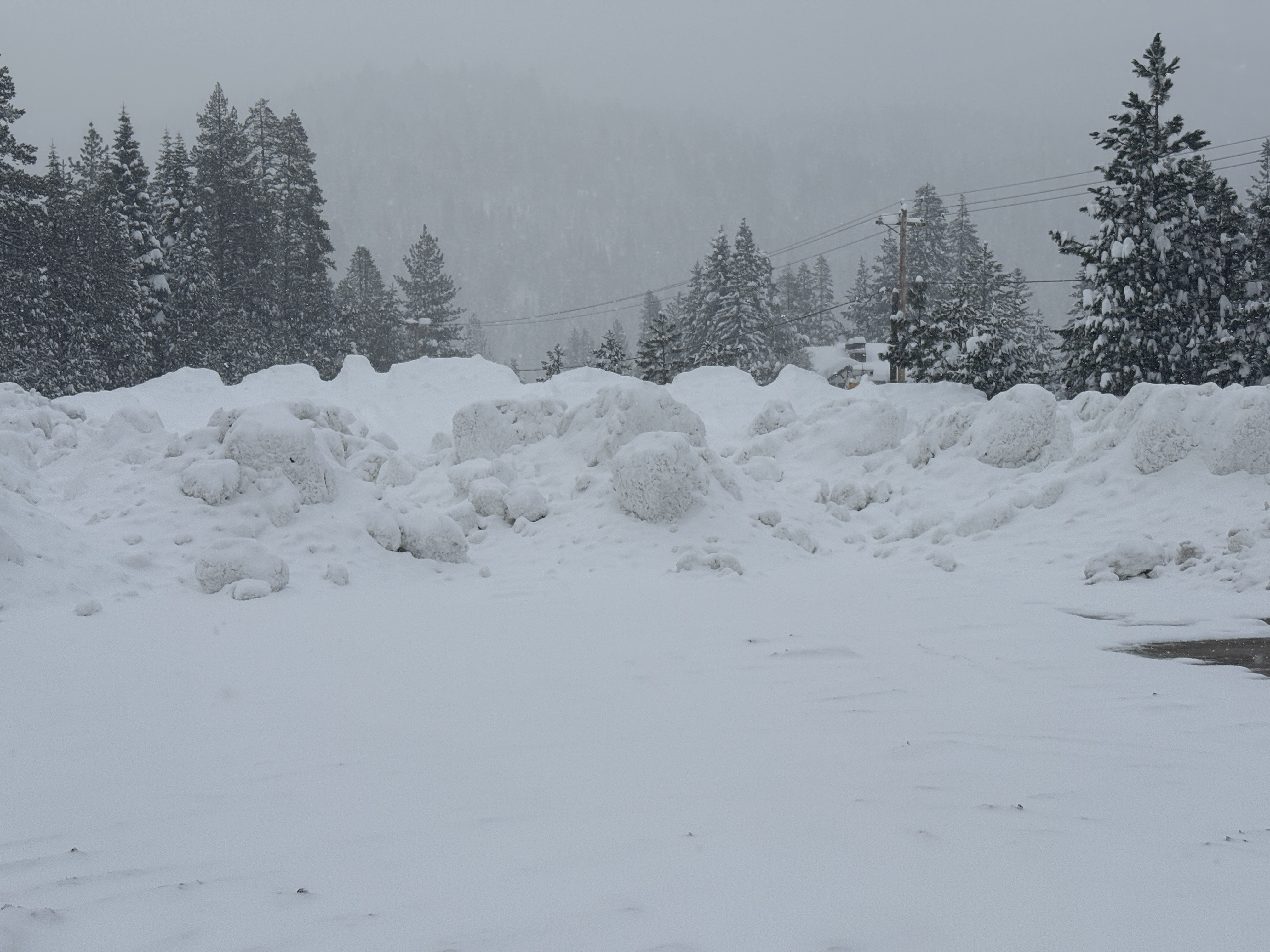 The image shows a snow-covered area with large piles of snow alongside a cleared zone, indicating active snow removal activities. Utility poles with wires are seen in the background, suggesting proximity to infrastructure work. The construction stage appears early, with no visible groundwork or installation activities in progress. The site is likely in a preparatory phase dealing with snow management to maintain access and safety.