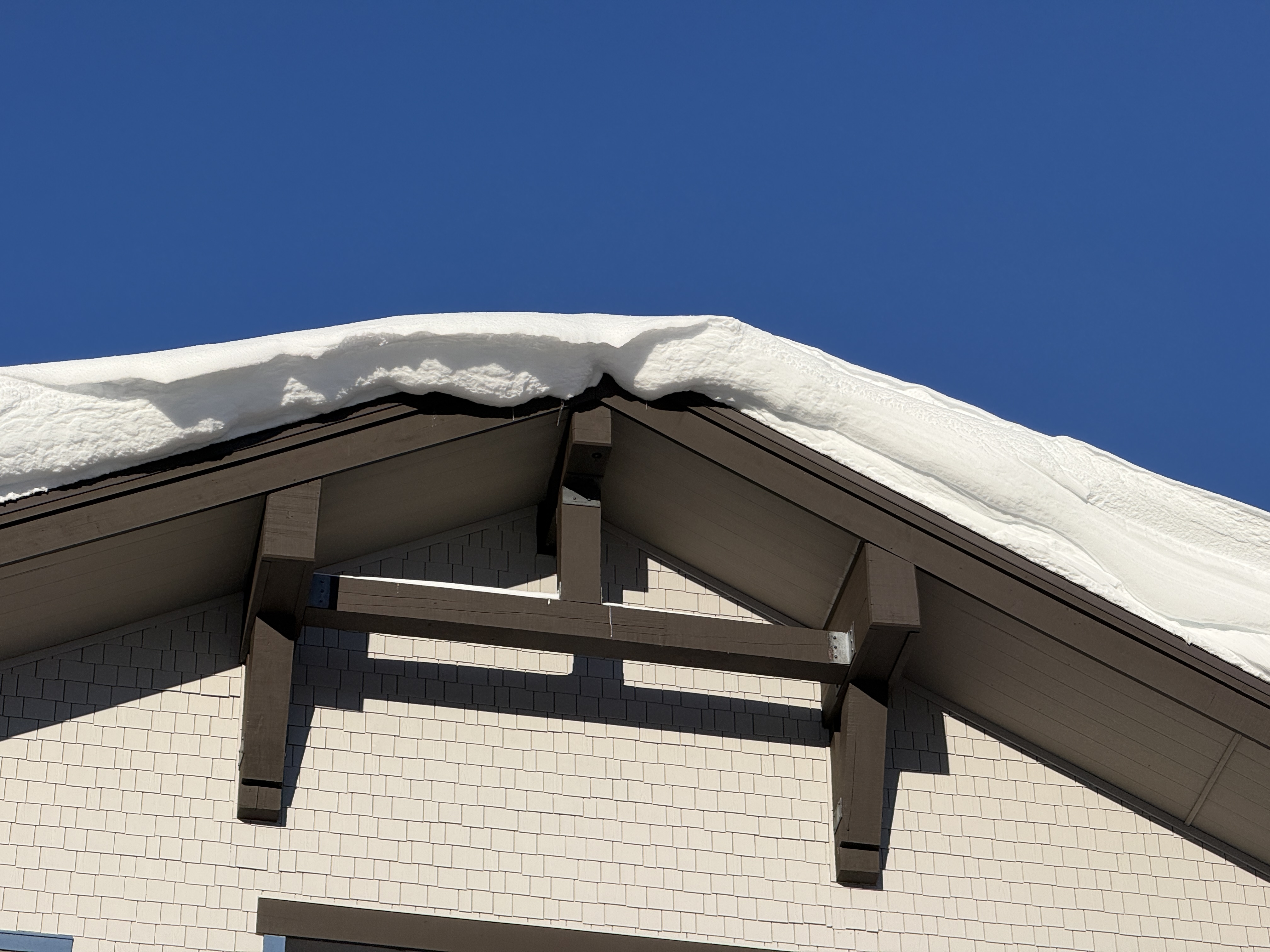 Completed construction phase, clear weather conditions with snow on the roof, indicating recent snowfall. Lighting is bright and clear.