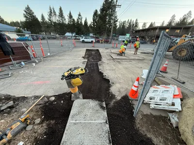 Early construction phase with exposed soil conditions, bright daylight indicating good lighting.